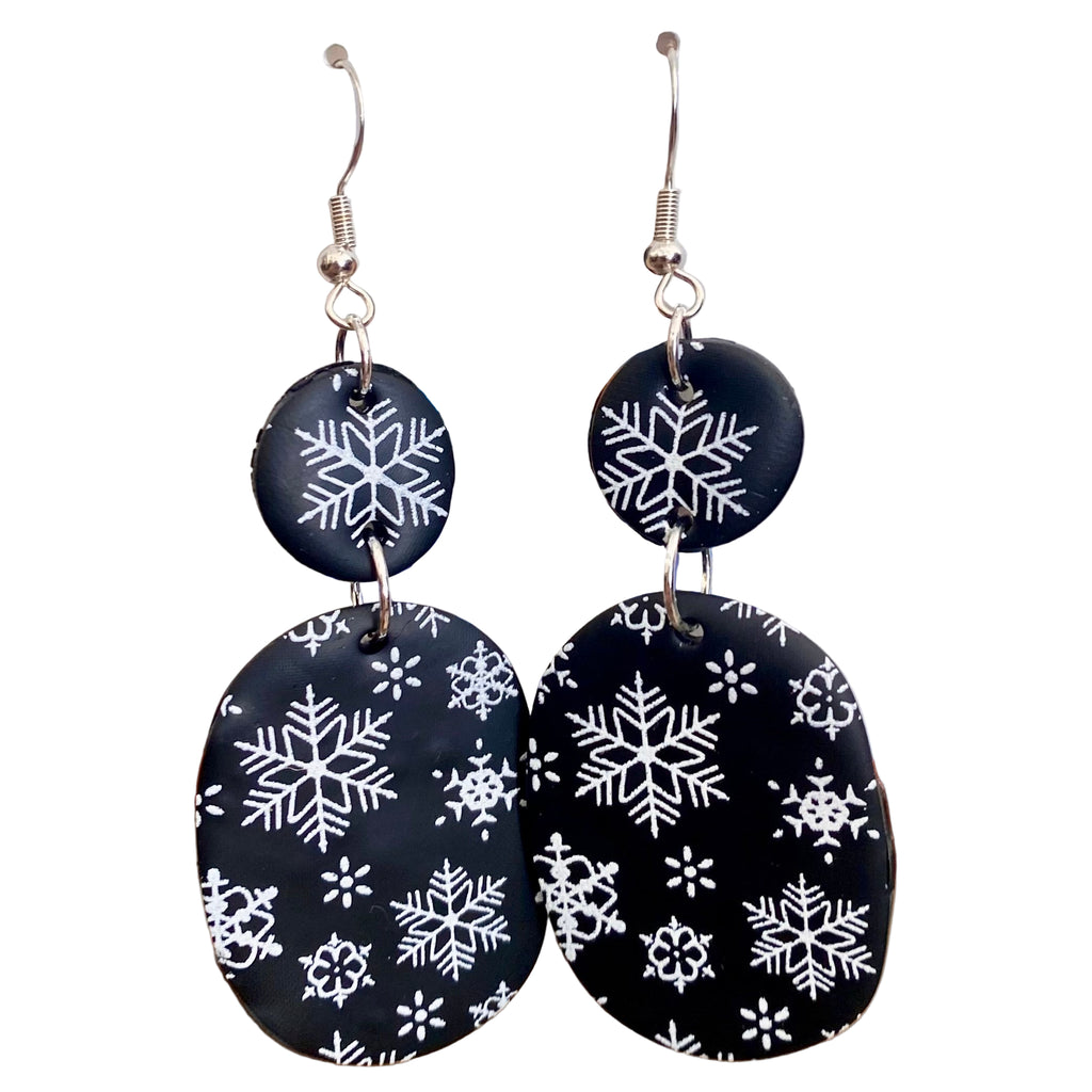 Lily's Oval Black and White Snowflake Earrings
